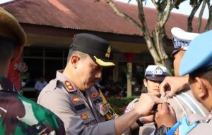 Pada apel tersebut, dilakukan penyematan tanda Operasi Kepolisian Kewilayahan Keselamatan Toba 2025 kepada perwakilan dari unsur Kepolisian, TNI, dan Dinas Perhubungan.
